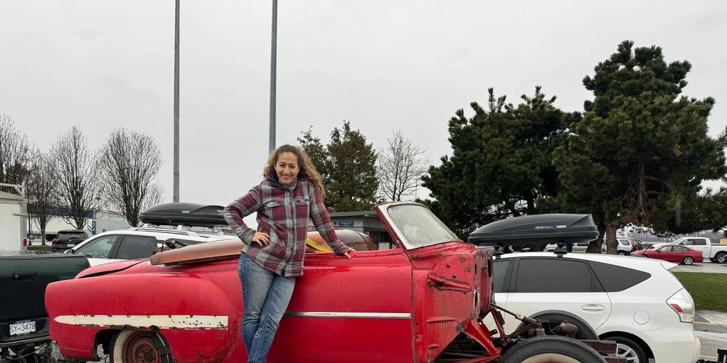 The car was shipped via enclosed trailer from Ontario to Vancouver. We then hauled it home, lots of folks kept coming up to us on the ferry line up to take a peak at this cool ride. They were surprised to learn that it was I, a female, that was the owner and soon to be builder of this precious cargo!